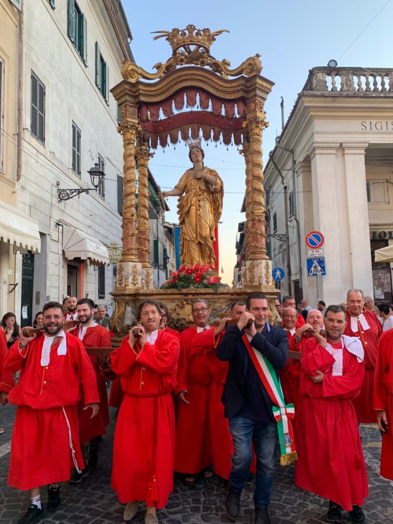 Anche quest’anno la festa della Patrona di Ariccia ha riscosso un enorme successo. Grande partecipazione alla processione per le vie del centro, con una suggestiva celebrazione Eucaristica sul piazzale del Belvedere. Anche il Sindaco di Ariccia, Gianluca Staccoli, ha portato in processione la statua della Santa Patrona della città. Oltre al Primo Cittadino, erano presenti alla manifestazione, la Consigliera Irene Falcone e gli Assessori Mariani e Ghignati. Numerosissimi cittadini e turisti hanno gustato e apprezzato le famose cannacce, offerte e preparate dalla ditta Dussmann e distribuite dai Cavalieri di Sant’Apollonia insieme a panini con la salsiccia, cocomero, ciambelline e buon vino.