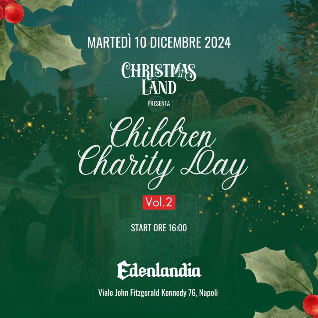 Saranno oltre 4.000 le bambine e i bambini ospiti delle case famiglia di Napoli, Caserta, Nola, Castellammare, Caivano, Parete, ad affollare martedi 10 dicembre dalle ore 16 i viali di Edenlandia per la seconda edizione del Children’s charity day, l’evento di beneficenza promosso da Gianluca Vorzillo, CEO di Tanit che gestisce i parchi di Edenlandia e di AcquaFlash.