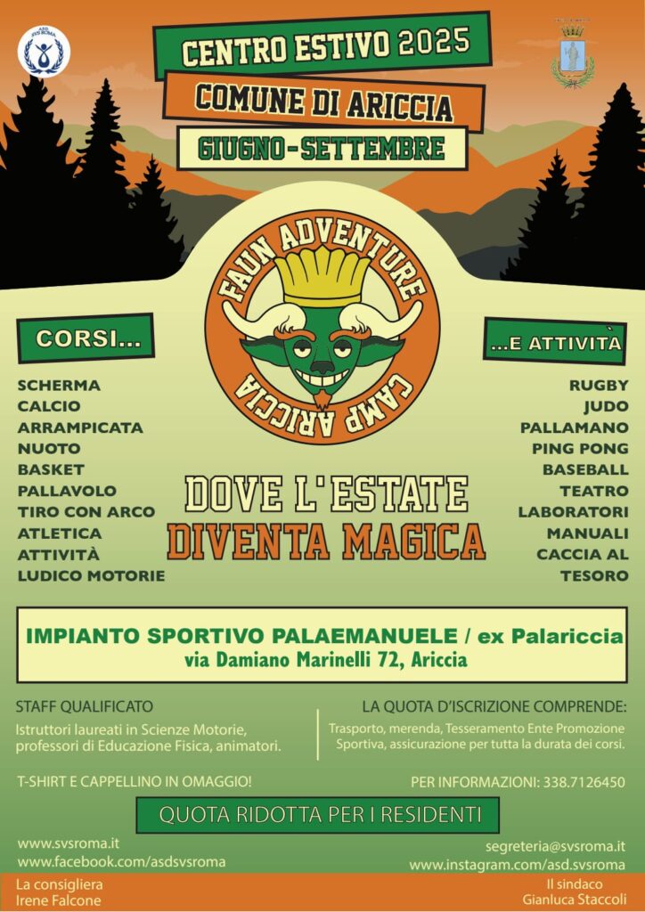 Per informazioni sulle iscrizioni sulle agevolazioni per i residenti e sui programmi, si prega di visitare il sito web del Comune o di contattare il numero 3387126450. Il centro estivo sarà di nuovo ospitato presso la sede storica dell’impianto sportivo polifunzionale PALAEMANUELE (ex Palariccia), in via Damiano Marinelli e sarà aperto dal 9 giugno orario 8,00-16,30.