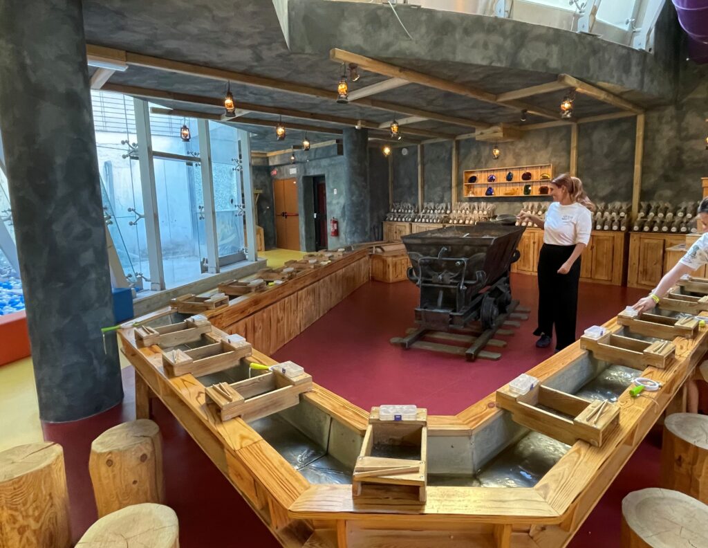 Diviso in aree tematiche, i piccoli esploratori vengono accolti dal gong del Giappone, dove imparano a fare gli origami. Per poi passare alle gru magnetiche, pilotabili personalmente dai bimbi. E ancora la piscina di palline che nasconde reperti archeologici, il labirinto di tubi che fanno correre palline colorate, il riciclo del grano e la miniera; una miniera con tanto di setacci e acqua corrente, e pietre preziose nascoste all’interno della sabbia.