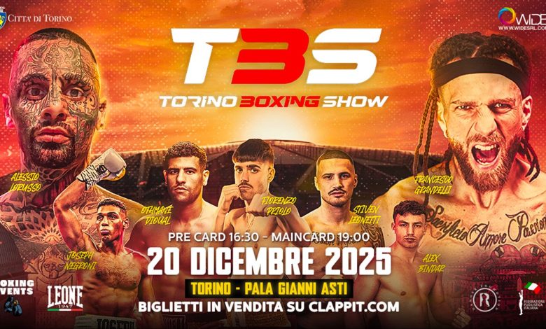Match clou sempre di boxe, dopo le 23:15 al Pala Asti, tra un altro beniamino locale, il torinese Francesco “Kekko” Grandelli (con uno score record di 20 successi, 4 sconfitte e 2 pari), e lo spagnolo José Antonio Sanchez Romero (17-2-1). In palio (sempre in 10 round) la difesa del titolo Intercontinentale WBO (fino a 57 kg. di peso), da parte di Grandelli, per la prima volta nella sua città. Un’eventuale vittoria spalancherebbe ad entrambi le porte per una sfida iridata nel 2026.