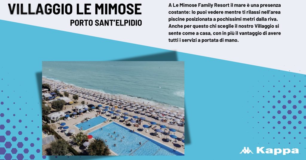Invece a Porto Sant’Elpidio dal 30 maggio al 2 giugno saranno due le location e prescelte: “Le Mimose Family Resort” dove il mare è una presenza costante; lo si può ammirare mentre ci si rilassa nell’area piscine posizionata a pochissimi metri dalla riva. “Chi sceglie questo Villaggio si sente come a casa”, con in più il vantaggio di avere tutti i servizi a portata di mano.