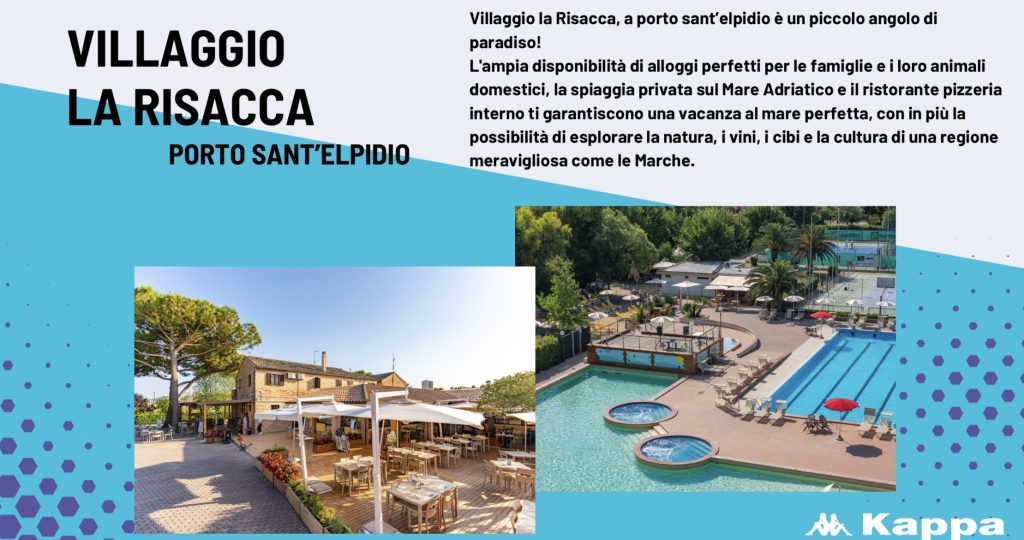 E poi il “Villaggio la Risacca”, sempre a Porto Sant’Elpidio, è un vero, piccolo angolo di paradiso. Vanta un’ampia disponibilità di alloggi perfetti per le famiglie e i loro animali domestici, la spiaggia privata sul Mare Adriatico e il ristorante pizzeria interno che garantiscono una vacanza al mare perfetta, con in più la possibilità di esplorare la natura, i vini, i cibi e la cultura di una regione meravigliosa come le Marche.
